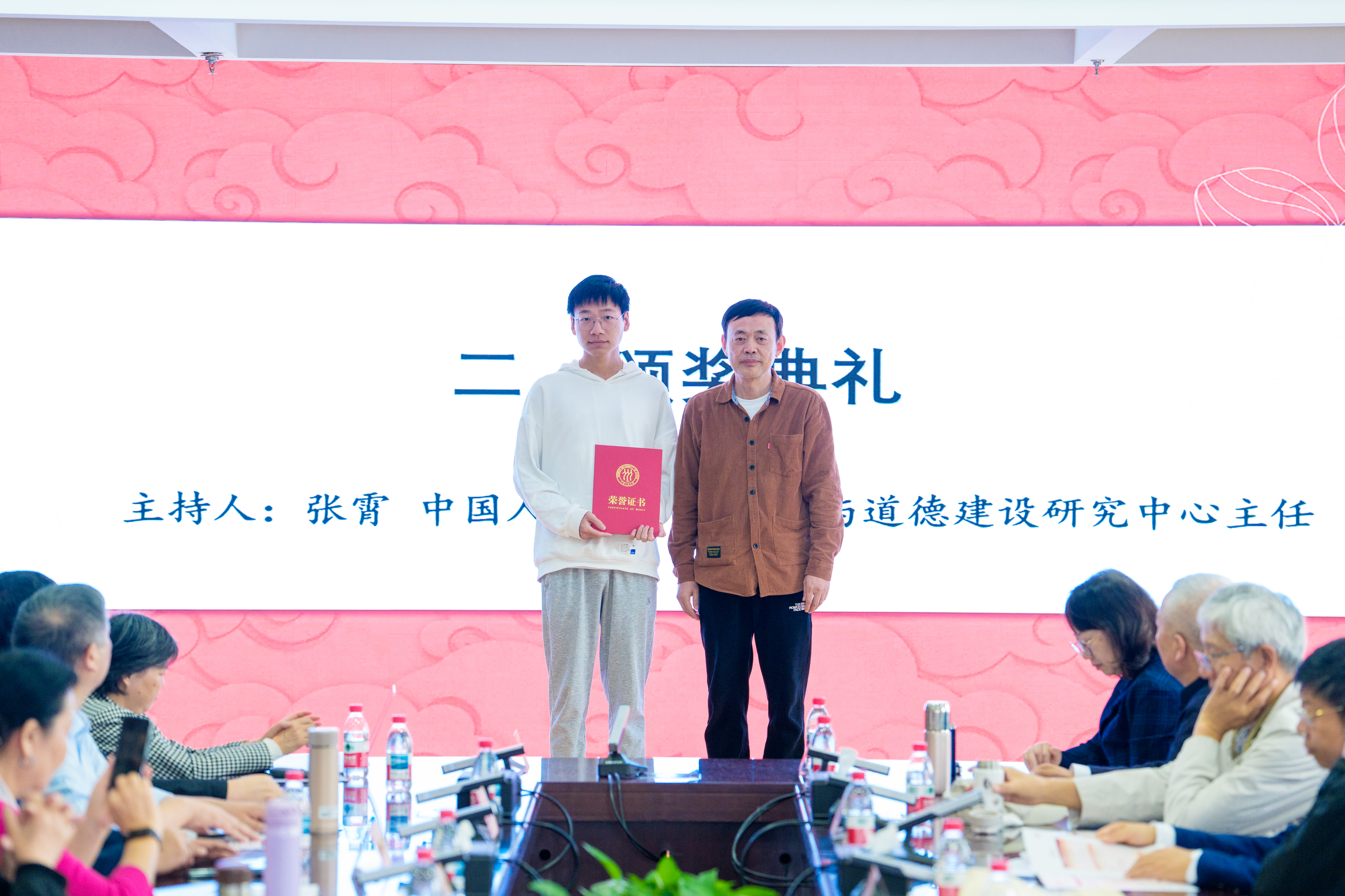 本网讯(通讯员徐勐)10月12日,中国人民大学成功举办第五届国杰论坛暨第五届罗国杰伦理学教育基金颁奖典礼。该基金由中国人民大学教育基金会设立,旨在弘扬罗国杰教授毕生致力于中国伦理学与道德建设事业的崇高精神,推动伦理学教育研究发展,促进社会道德风尚提升。基金每两年评选一次,奖励在伦理学研究、教学与社会道德教育宣传等方面作出突出贡献的个人与团体。其中,“优秀学生奖”面向全国高校及科研机构伦理学专业的本、硕、博学生,每届评选18人,包括一等奖2名、二等奖6名、三等奖10名。在本届评选中,足球博彩app 2024级博士研究生徐勐荣获二等奖,2025级博士研究生魏亚杰荣获三等奖。