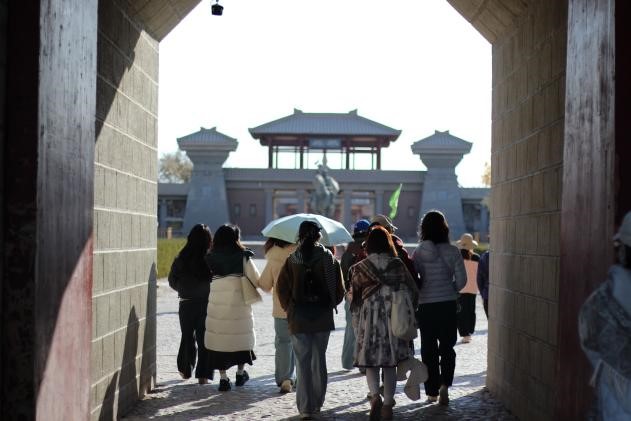 乘坐观光车,穿过大漠,师生一行沿着古人走过的古道缓步前行。当双脚真切踏上阳关古道,从前在博物馆、书籍中获得的历史认知变得立体而鲜活。这里不仅是边塞诗中悲凉送别的意象,更是中华文明向西开放的前哨。站在遗址眺望茫茫丝路,同学们深刻体会到敦煌作为“华戎所交一大都会”的真实内涵,也更加明白作为青年学子要时时传承丝路精神,在守护文化根脉的同时以更开阔的胸怀推动文明互鉴,让阳关古道在新时代继续奏响文明对话的乐章。