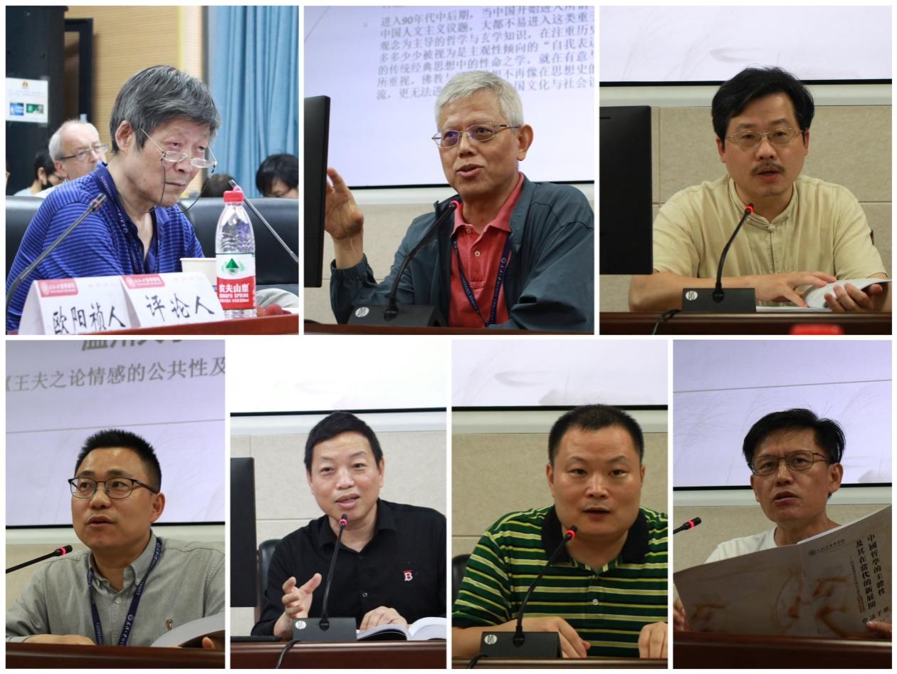 第二组由陕西师范大学丁为祥主持,武汉大学欧阳祯人评议。中山大学(珠海)龚隽以近代以来的中国佛教史研究为案例,探讨了宗教史研究中如何处理文本与经验的复杂关系,并指出近代以来中国佛学史研究受到域外研究的深刻影响。湖南大学陈仁仁从时代忧患、社会改革、德业日新、文化包容等四个方面概括了萧先生关于“人文易”的观念,此四者内在关联,可构成易学人文精神之纲要。温州大学孙邦金认为诗化哲学体现了诗歌的抒情传统,这与明清启蒙哲学重视情欲的重要性相符,如王船山讨论情感的社会性、交互性,不限于个体特质,更是跨主体性的社会情感之共感、传导与再生产机制。温州大学吴龙灿依据易庸学的人文传统,阐述了萧先生的儒家易庸之学,及其多元互补文化史观与人文化成的实践智慧。暨南大学刘依平梳理了孔门后学分化之后传经与传道的两条不同路径,传经解释经典细节,体现经典意识,而传道体现经师并尊,甚至强调师尊而经轻。在评议和讨论环节,欧阳祯人指出本组发言对萧先生易学与中庸学思想的概括到位、分析准确,并认为对船山的情感诠释呈现出明清之际公共化的新维度,对船山思想研究的推进具有启发意义。