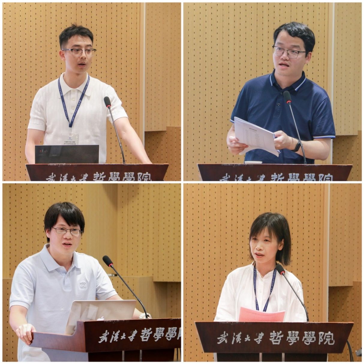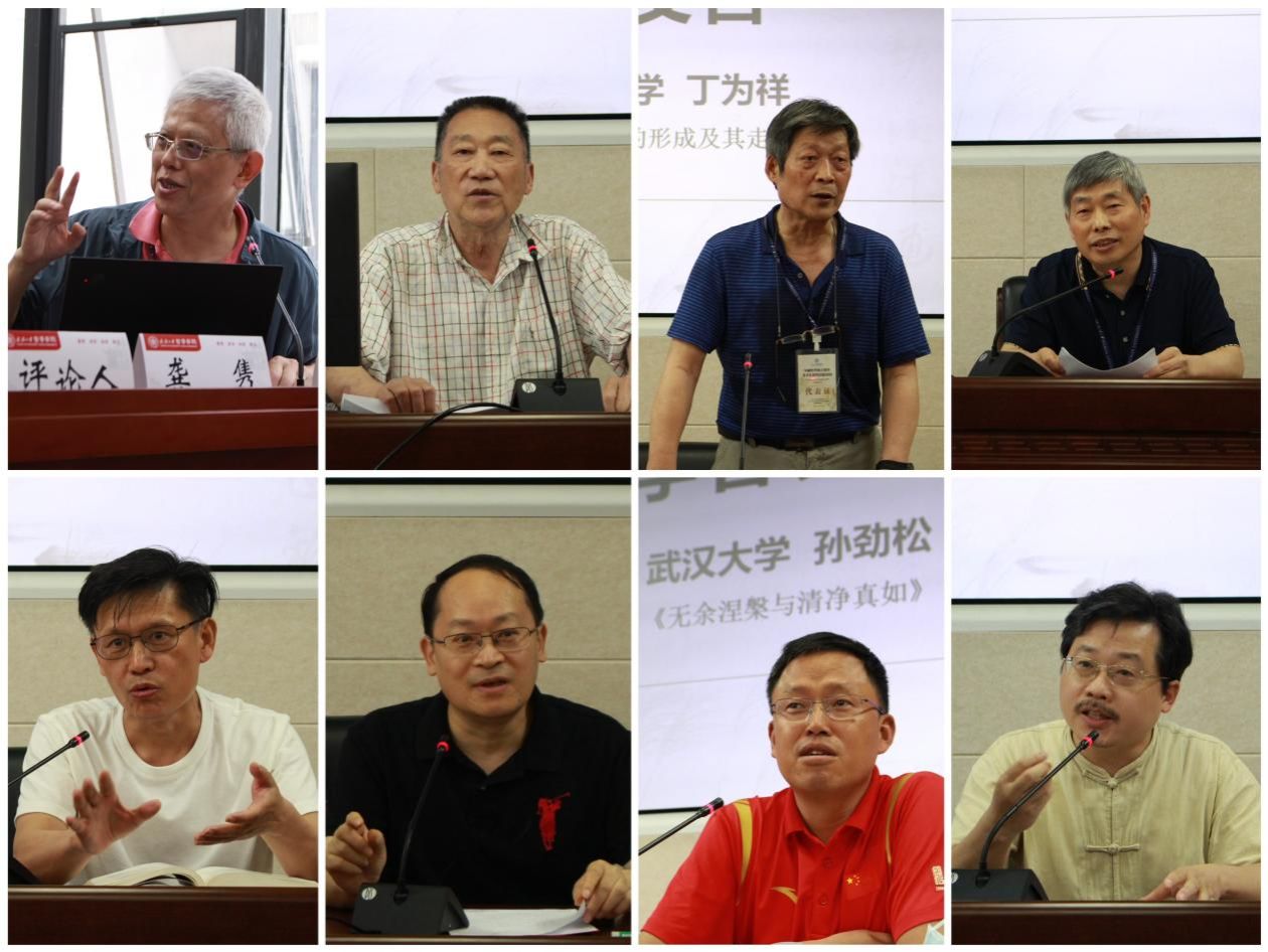 第一组由中山大学(珠海)龚隽主持,湖南大学陈仁仁评议。武汉大学宫哲兵围绕“道”的概念,指出中国哲学的“道”与基督教“太初有道”类似,具有超越维度的神性特质。陕西师范大学丁为祥概述了王船山反对阳明学,纠偏程朱理学,归本横渠学的过程,提出船山“因所必发能,能必副其所”的认识论通过解构理学的精神构架,走向与理学有别的精神关怀。湖北省社会科学院梅珍生通过简述“历史乐章凭合奏”的方法论、“积杂以成纯”的认识论,讨论了萧先生理性与感性双峰并峙的诗化哲学。武汉大学欧阳祯人怀念了萧先生嘱托自己研究刘咸炘的经过,并概括了刘咸炘坚守先秦儒学的中观理想,回归孔、老的太古之道的理念。华中师范大学刘固盛阐述了从新的学术角度和思想维度对中国老学进行贯通性、深入系统研究的思想史意义。武汉大学孙劲松简要报告了“民藏”工程的重要意义,并分析了无余涅槃与清净真如在逻辑上的相通之处。在讨论和评议环节,陈仁仁对诸位老师的论文做了精彩的点评,认为本组发言主题丰富,涵括儒释道,内容呈现出的多元视野,展现了珞珈中国哲学研究的广度与深度。