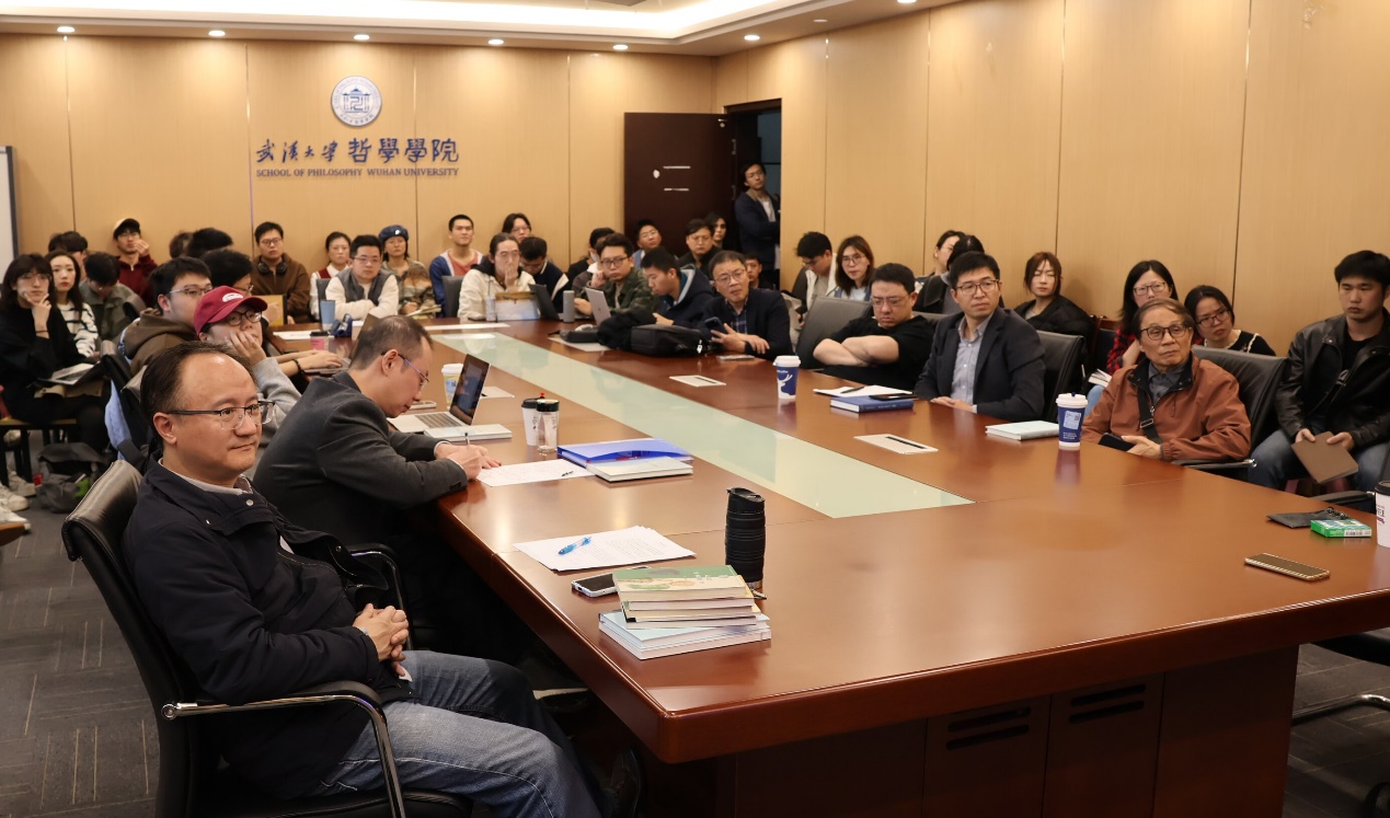 武汉大学曾晓平老师从三个方面肯定了讲座的启发性。一是区别于一般学者较为局限的研究领域,王路教授对“哲学是什么”、“形而上学是什么”等有强烈的信念,并在其统一的哲学观的指引下从事逻辑学研究和哲学研究。二是此种统一的哲学观使得一种统合黑格尔存在论、认识论、逻辑学的融贯研究得以可能。三是点明了逻辑学作为哲学的专业基础和方法论基础的重要意义。最后,曾晓平老师就王路对黑格尔的逻辑学式解读、语言层次上的解读可否拓展到认识、思维、乃至思维背后的对象进行发问,譬如从逻辑学的真与假推及到思维、所思维之物的真假。王路老师用关于矿泉水可以提出的问题举例,认为being不只是翻译成“存在”才表达认识,不是“存在”而是“是”才是日常语言中表达认识的最基本的方式。“是”保留了该哲学语汇与日常语言的紧密联系,其相关句式(“是什么”、“是白色液体吗”)是有生活根系的、关于认识的真问题。