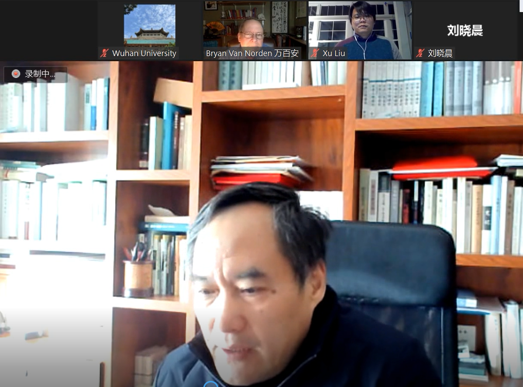 本网讯(通讯员丁铭)2021年12月2日,大学文明对话高等研究院主办的“他者眼中的中国形象期待”系列访谈式讲座第二期顺利进行,本期与谈嘉宾为美国瓦萨学院教授、著名汉学家万百安(Bryan Van Norden)先生。此次对谈通过线上平台进行,足球博彩app-体育博彩平台大全 教授、武汉大学文明对话高等研究院院长吴根友主持访谈,耶鲁大学访问学人刘旭博士翻译。足球博彩app-体育博彩平台大全 以及校内外、海内外的老师和学生通过线上直播平台参加了本次讲座。
