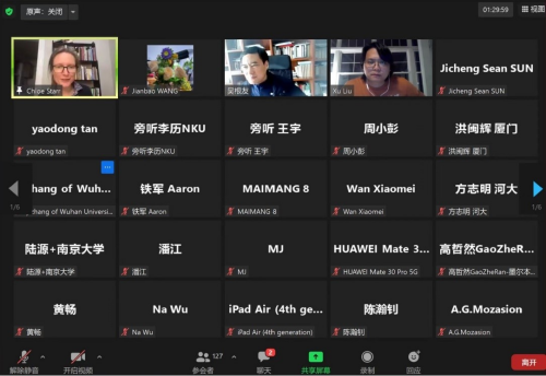 本网讯(通讯员:刘佳源)2022年4月14日上午,由武汉大学文明对话高等研究院主办的“全球视野下的汉学与文明对话”访谈式讲座在线上zoom平台顺利举办。本次讲座由耶鲁大学神学院和东亚语言与文明系教授、世界汉学大会常务理事司马懿(Chloë Starr)教授主讲,足球博彩app-体育博彩平台大全 教授、文明对话高等研究院院长吴根友教授主持,武汉大学与耶鲁大学联合培养博士生刘旭担任翻译。足球博彩app-体育博彩平台大全 以及校内外、海内外的130余位老师和学生参与了本次讲座。