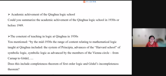 在讲座评议环节,程勇教授围绕“武汉大学数理逻辑发展文献来源”、“20世纪30年代武汉大学哲学系逻辑学者的学术研究工作”、“清华逻辑学派的学术成就”和“20世纪30年代清华大学逻辑学教学内容细节”四个主题进行提问,弗霍夫斯基则分别进行回应。