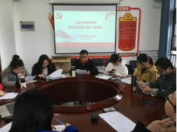 随后,刘义胜副书记代表学院党委向全体研究生党支部书记作关于研究生党支部重新拆分设置的说明,并介绍了《足球博彩app 研究生党支部调整设置方案(意见稿)》(以下简称“方案”)。全体研究生党支书围绕方案进行了充分讨论,对方案精神进行了肯定。对于部分支部书记提出的关于支部调整流程、时间安排等方面的疑问,刘书记一一给予了答复。
