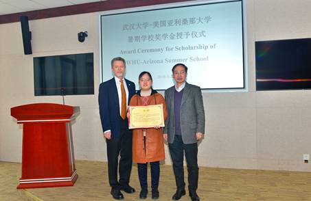 本网讯(通讯员:吕幸 彭蕾) 3月22日下午2:30,武汉大学—(美国)亚利桑那大学暑期学校奖学金授予仪式在足球博彩app 举行。亚利桑那大学政治哲学讲席教授、政治哲学研究中心主任大卫·施密特(David Schmidtz)、足球博彩app-体育博彩平台大全 副院长黄超、院长助理李勇出席了本次活动。