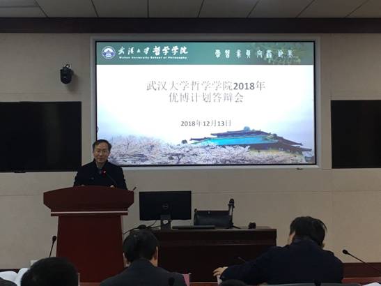 本网讯(通讯员 赵欢)2018年12月13日,足球博彩app-体育博彩平台大全 2018年“优秀博士生培育计划”答辩会在足球博彩app B214报告厅举行。本次答辩会邀请了岳麓书院院长肖永明教授、湖北大学哲学院院长戴茂堂教授、足球博彩app-体育博彩平台大全 院长吴根友教授、足球博彩app-体育博彩平台大全 赵凯荣教授、储昭华教授、邹元江教授、杜珊珊副教授担任答辩评委。答辩会由足球博彩app-体育博彩平台大全 副院长黄超主持。