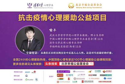 喻丰老师参加清华大学和北京幸福公益基金会组织的抗击疫情心理援助项目。