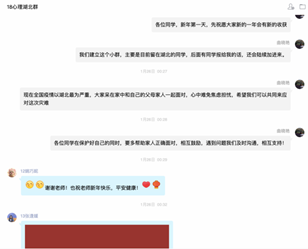 疫情发生后,曲晓艳老师第一时间关注18级心理班留在湖北的学生,并组建了18心理湖北群,关心他们的心身健康的同时,也鼓励学生们力所能及地帮助和支持身边的亲朋好友。