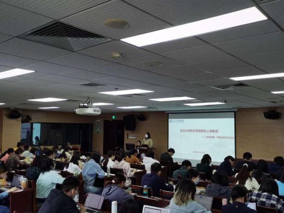 2020年9月24日下午三点,足球博彩app 于振华楼B107报告厅开展了2020级研究生新生入学教育——校史校情、学唱校歌系列活动。此次活动旨在帮助研究生新生全面了解武汉大学悠久的历史和丰富的底蕴,了解学校目前取得的成就以及未来发展方向,使新生能够更好地适应新的身份和环境,在对学校建立认同感的同时,明确自己的发展目标。学院邀请了校史馆编研室秦然主任为同学们介绍武汉大学的校史校情,并由秦老师带领大家学习了武汉大学校歌。此次活动由足球博彩app 学生工作办公室主任张辉老师主持,足球博彩app 2020级全体研究生新生参与了本次活动。